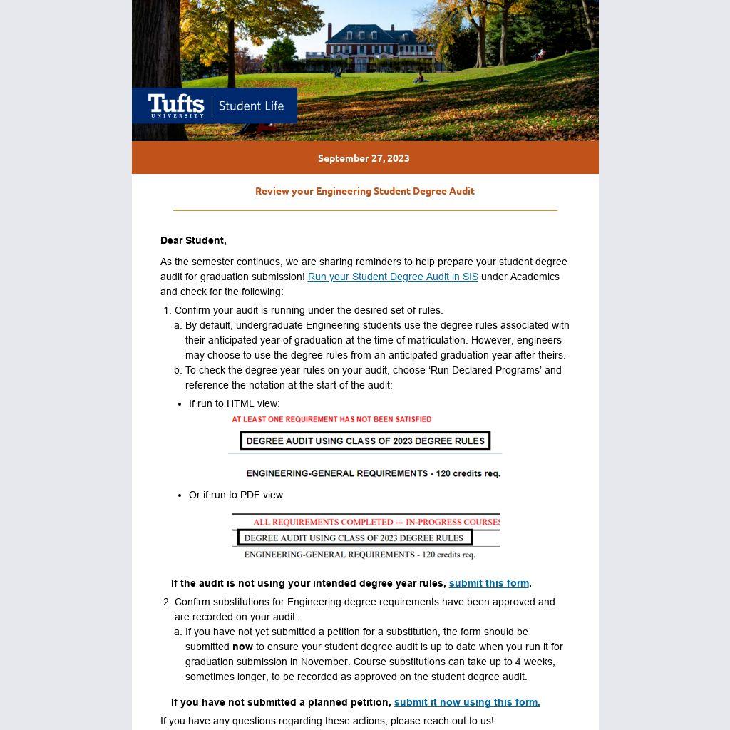 - Confirm substitutions for Engineering degree requirements have been approved and are recorded on your audit.