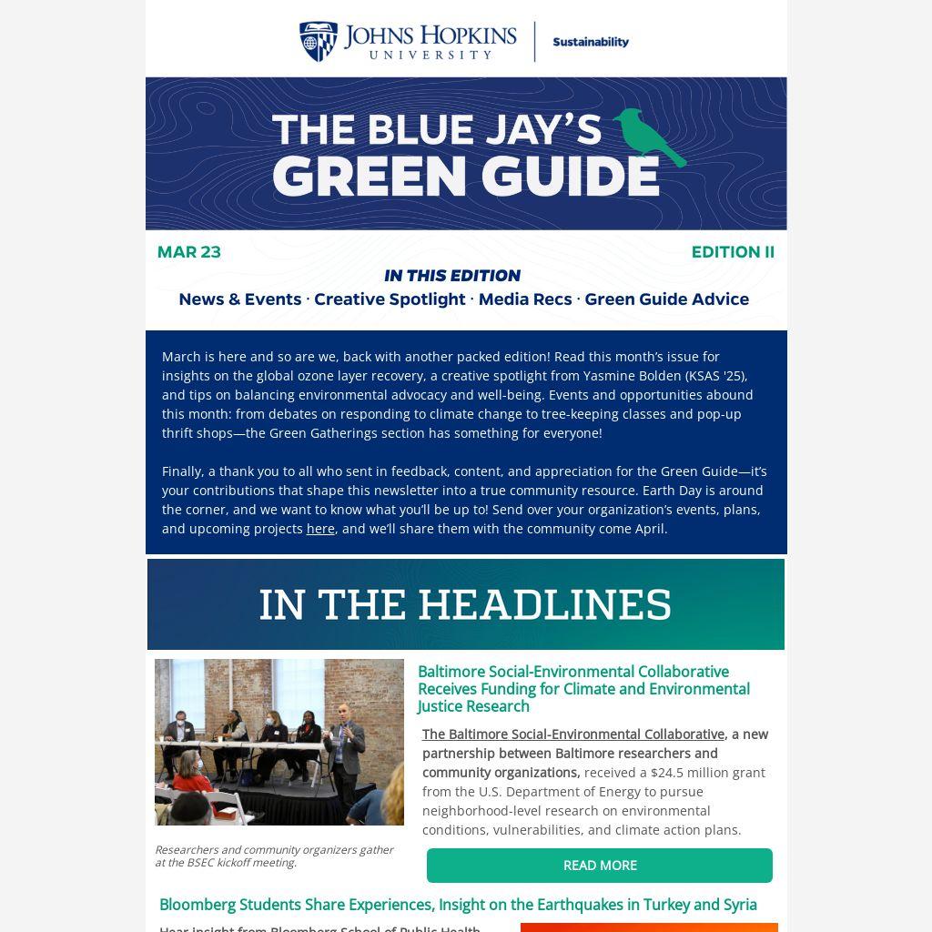Finally, a thank you to all who sent in feedback, content, and appreciation for the Green Guide—it’s your contributions that shape this newsletter into a true community resource. Earth Day is around the corner, and we want to know what you’ll be up to! Send over your organization’s events, plans, and upcoming projects here, and we’ll share them with the community come April.