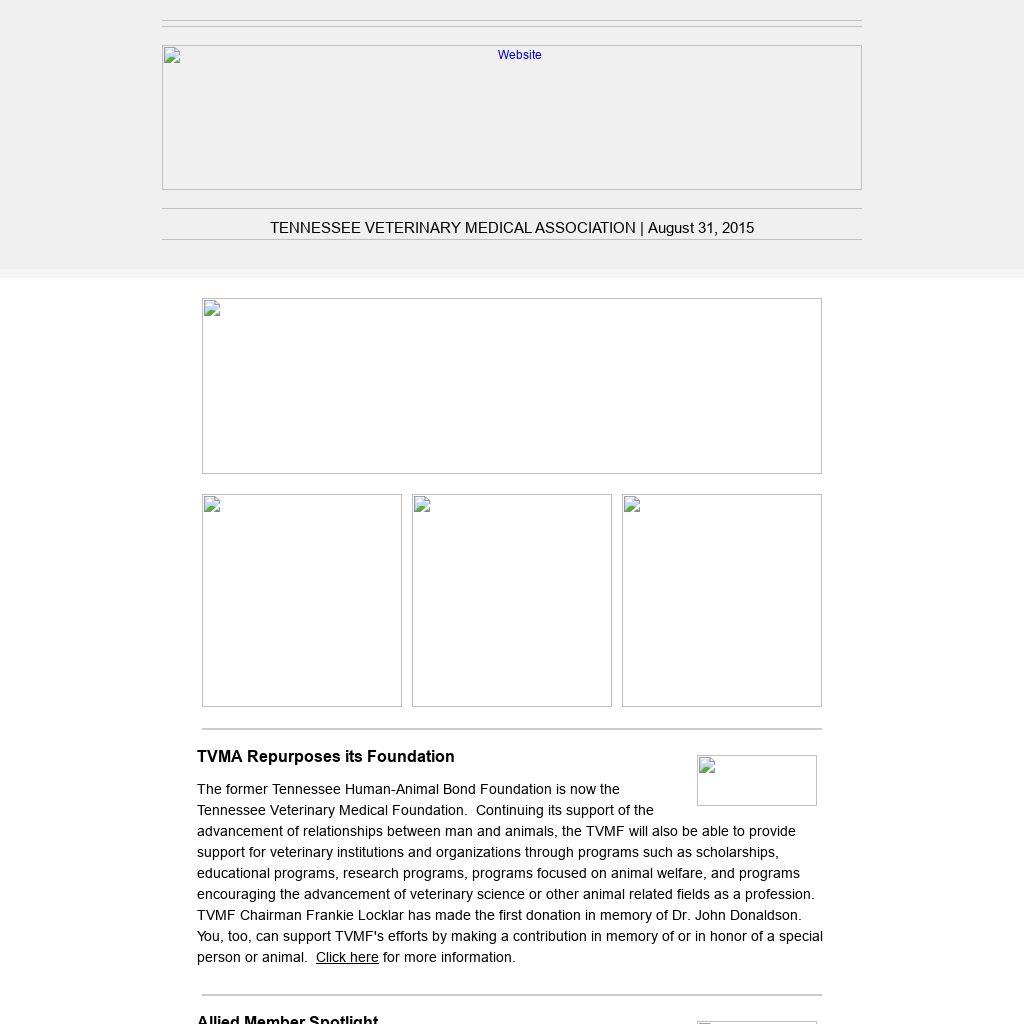 The former Tennessee Human-Animal Bond Foundation is now the Tennessee Veterinary Medical Foundation. Continuing its support of the advancement of relationships between man and animals, the TVMF will also be able to provide support for veterinary institutions and organizations through programs such as scholarships, educational programs, research programs, programs focused on animal welfare, and programs encouraging the advancement of veterinary science or other animal related fields as a profession. TVMF Chairman Frankie Locklar has made the first donation in memory of Dr. John Donaldson. You, too, can support TVMF's efforts by making a contribution in memory of or in honor of a special person or animal. Click here for more information.