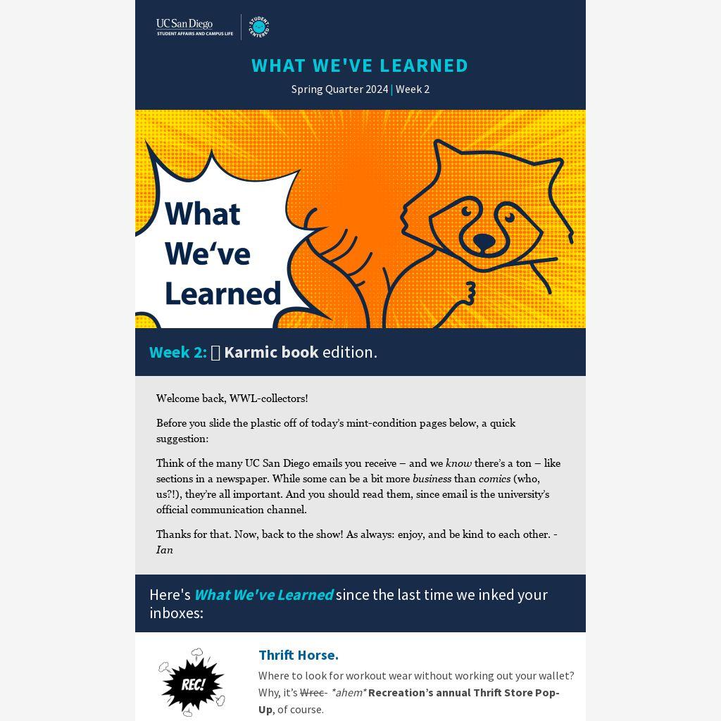 Think of the many UC San Diego emails you receive – and we know there’s a ton – like sections in a newspaper. While some can be a bit more business than comics (who, us?!), they’re all important. And you should read them, since email is the university’s official communication channel.