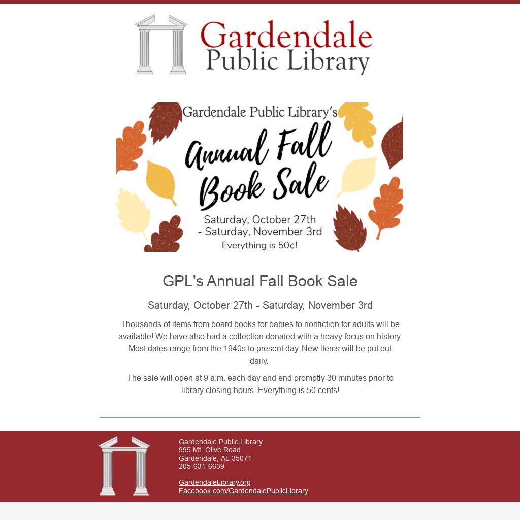 The sale will open at 9 a.m. each day and end promptly 30 minutes prior to library closing hours. Everything is 50 cents!