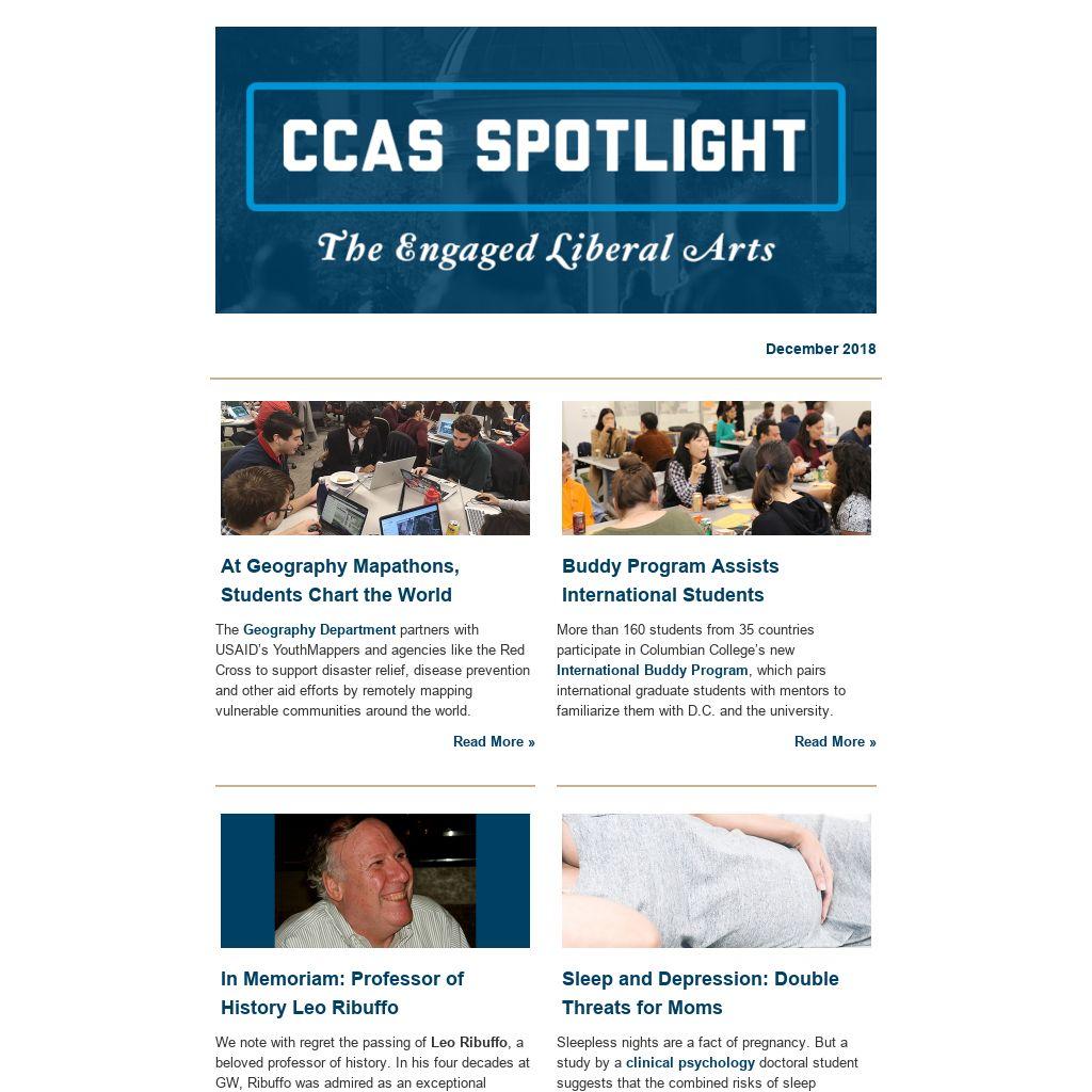 Two CCAS alumna were named to the Forbes 2019 30 Under 30 list: Tara Dorfman, BA ’11, (Journalism & Mass Communication) for championing new voices in comedy as a talent agent at Creative Artists Agency; and Sally Nuamah, BA ’11, (Political Science) for founding an organization that provides funding for low-income girls to become the first in their family to attend college.