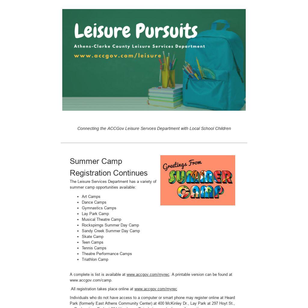 A complete is list is available at www.accgov.com/myrec. A printable version can be found at www.accgov.com/camp.