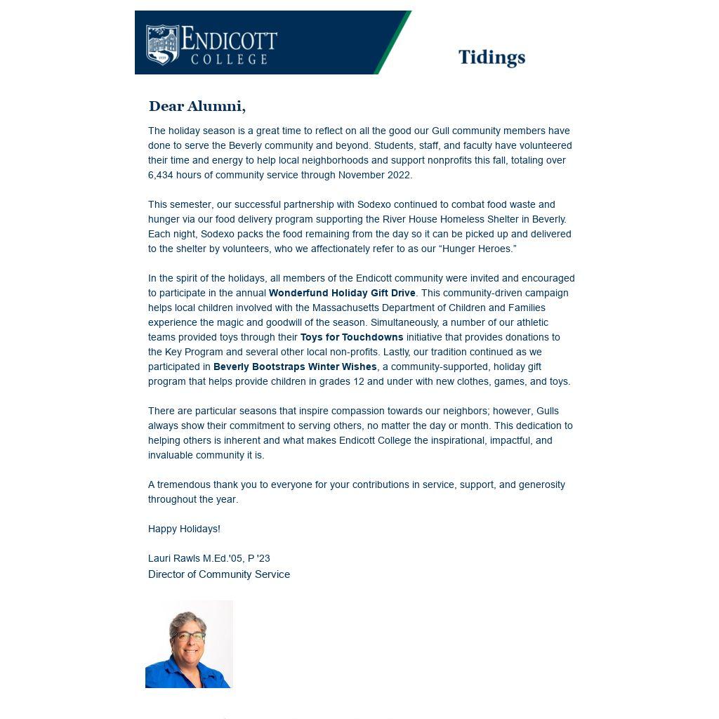 There are particular seasons that inspire compassion towards our neighbors; however, Gulls always show their commitment to serving others, no matter the day or month. This dedication to helping others is inherent and what makes Endicott College the inspirational, impactful, and invaluable community it is.