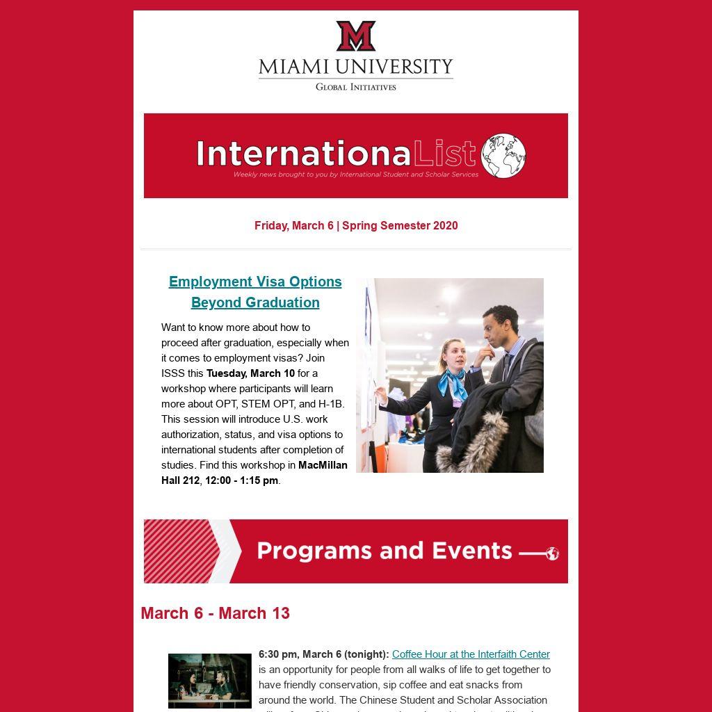 Are you looking to distribute information about your event, program, group, etc. to international students and scholars at Miami? Submit an ISSS communications request.