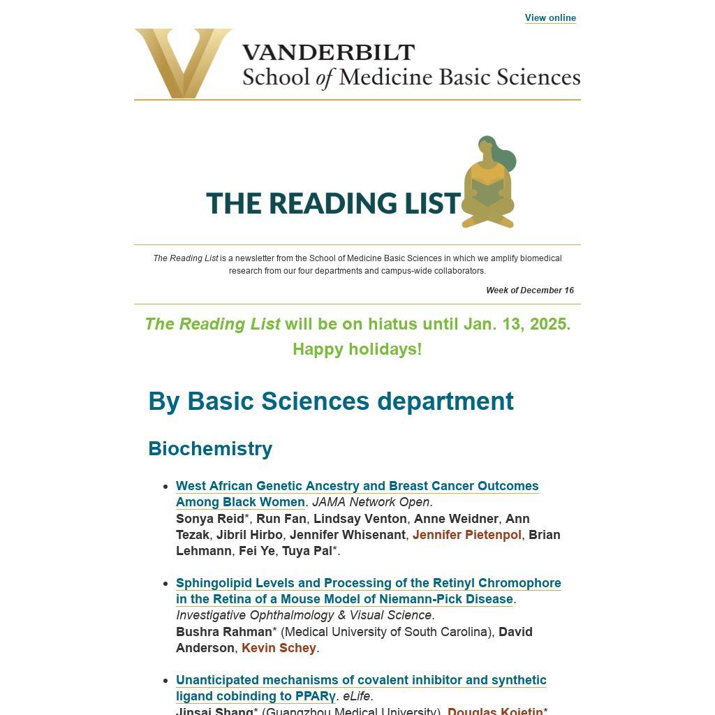 The Reading List is a newsletter from the School of Medicine Basic Sciences in which we amplify biomedical research from our four departments and campus-wide collaborators.