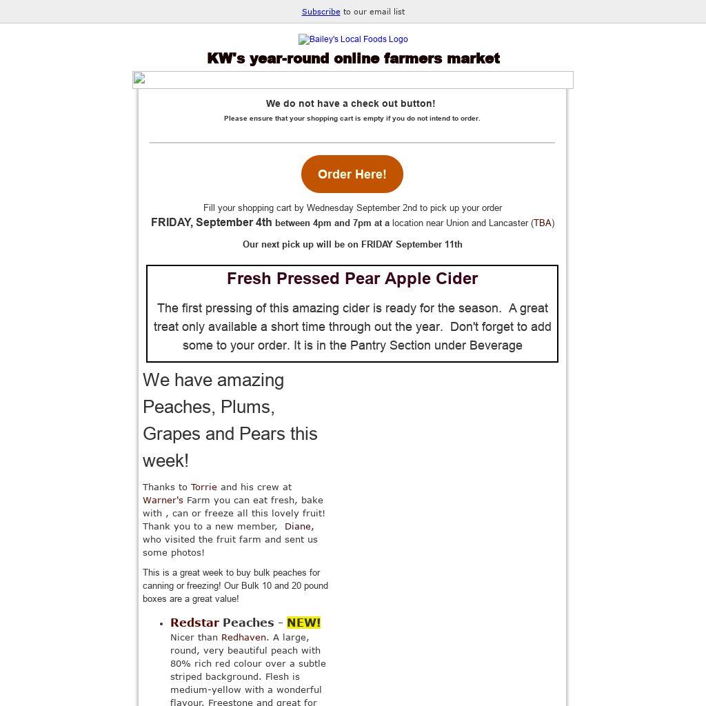 Thanks to Torrie and his crew at Warner's Farm you can eat fresh, bake with , can or freeze all this lovely fruit! Thank you to a new member, Diane, who visited the fruit farm and sent us some photos!