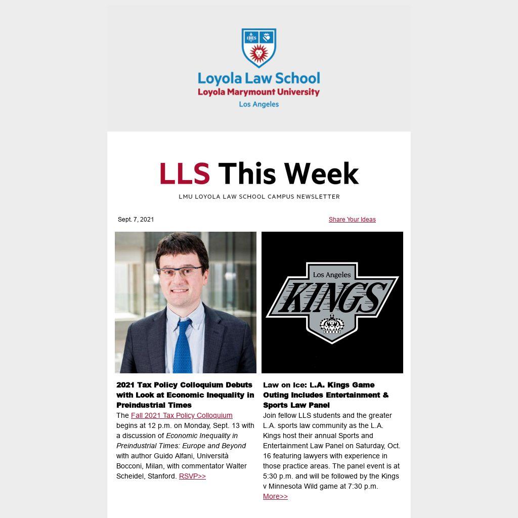 Event coordinators are encouraged to use the LLS Events Calendar for events they want promoted broadly. Note: You must select "Loyola Law School" in the department field in order for the event to display in the LLS roundup. Questions? Email us!