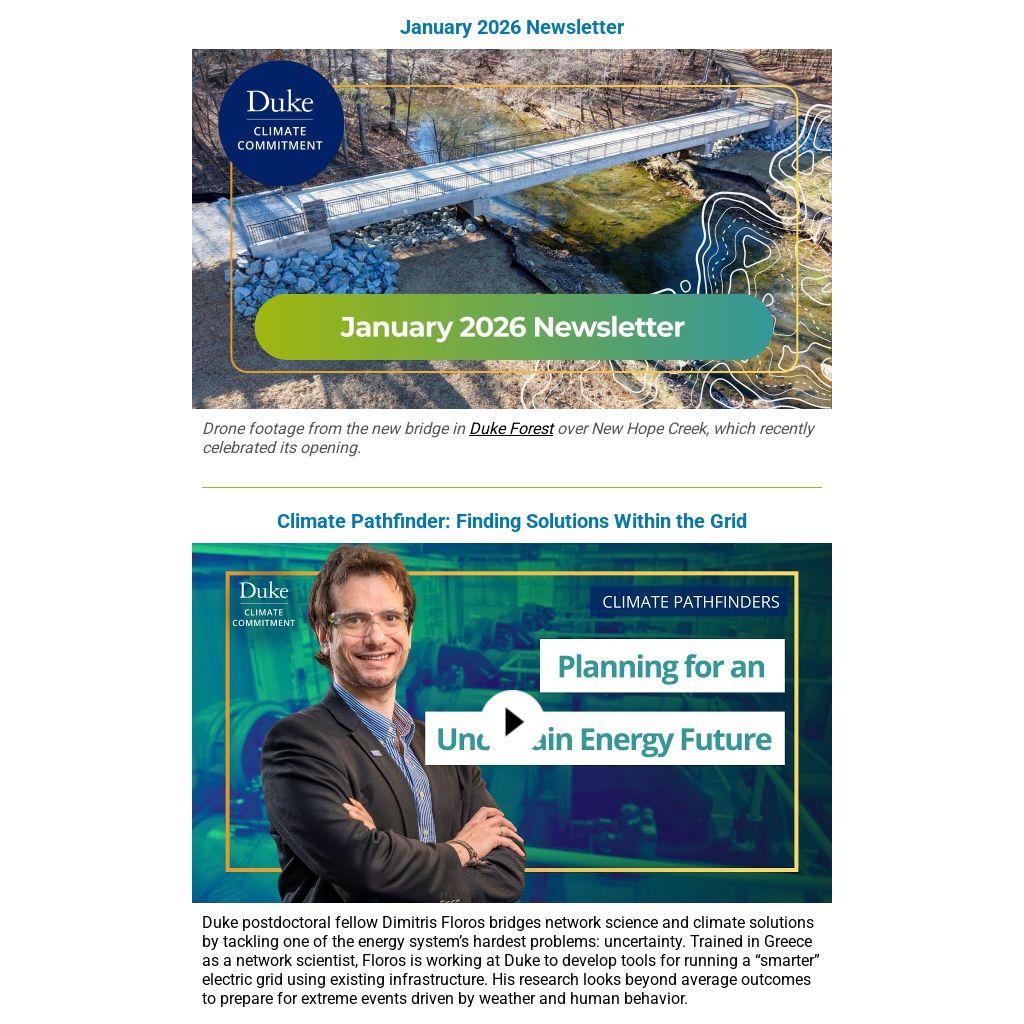 Duke postdoctoral fellow Dimitris Floros bridges network science and climate solutions by tackling one of the energy system’s hardest problems: uncertainty. Trained in Greece as a network scientist, Floros is working at Duke to develop tools for running a “smarter” electric grid using existing infrastructure. His research looks beyond average outcomes to prepare for extreme events driven by weather and human behavior.