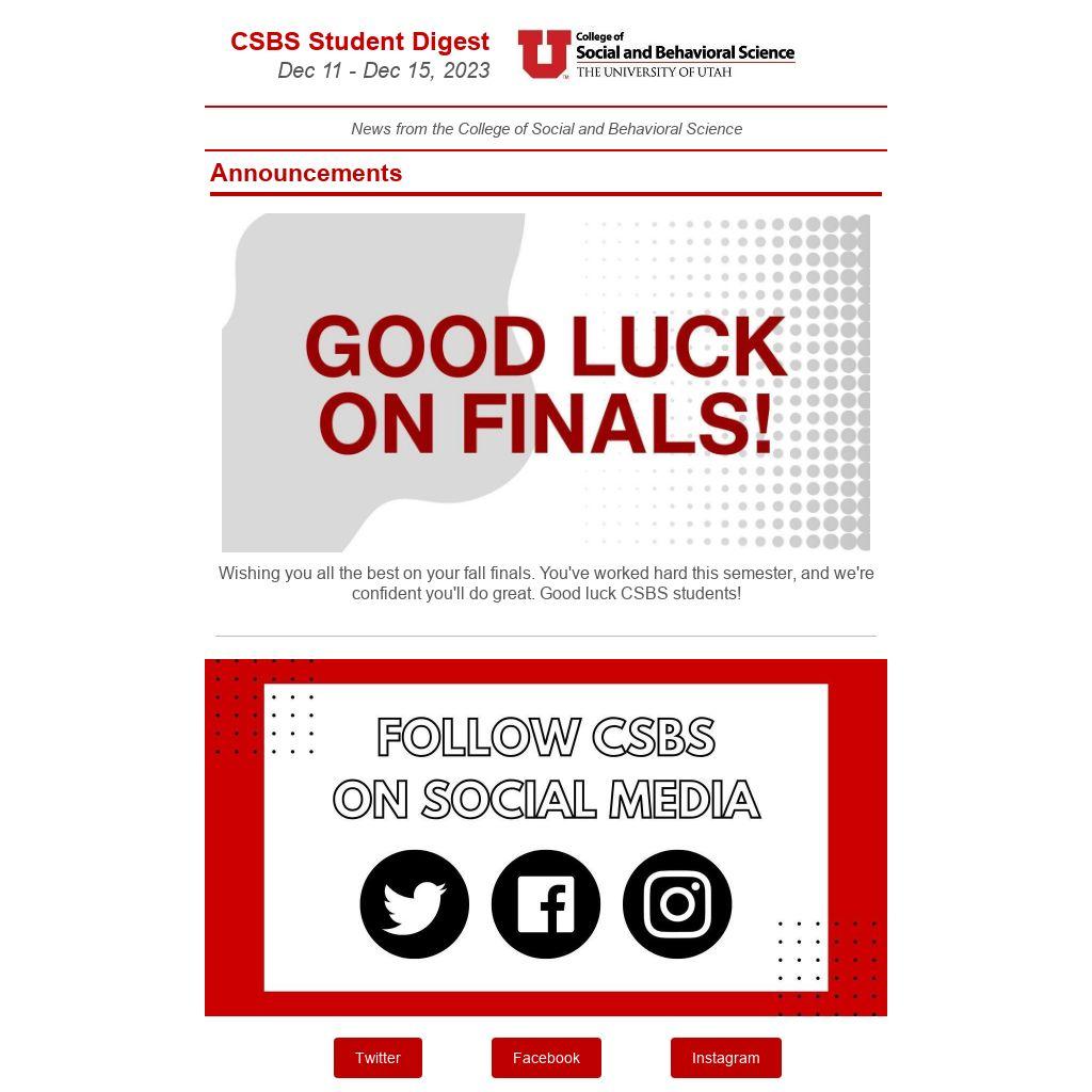 Wishing you all the best on your fall finals. You've worked hard this semester, and we're confident you'll do great. Good luck CSBS students!