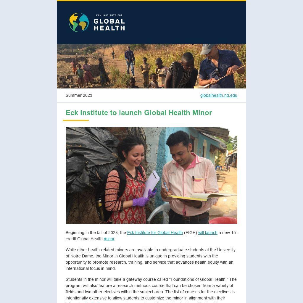 Beginning in the fall of 2023, the Eck Institute for Global Health (EIGH) will launch a new 15-credit Global Health minor.