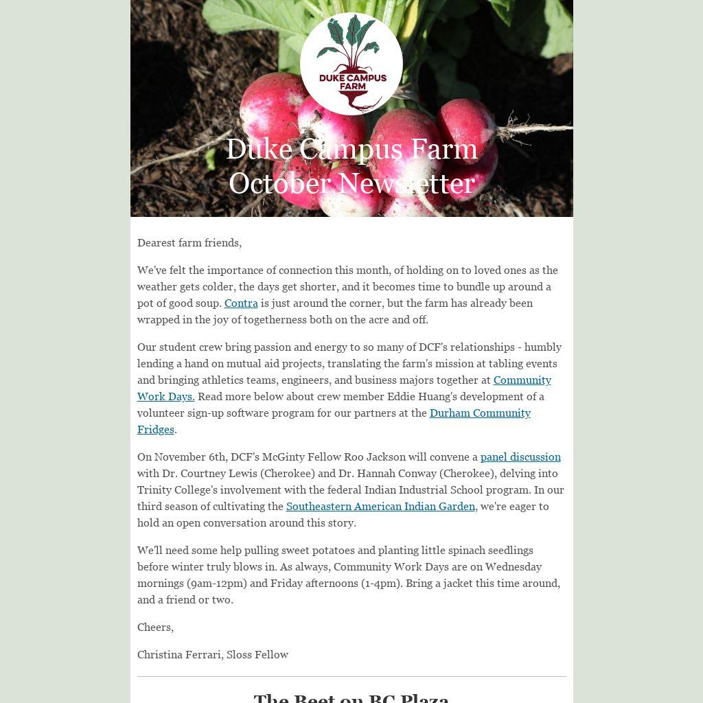 Stay in touch with the Duke Campus Farm by following us on socials.