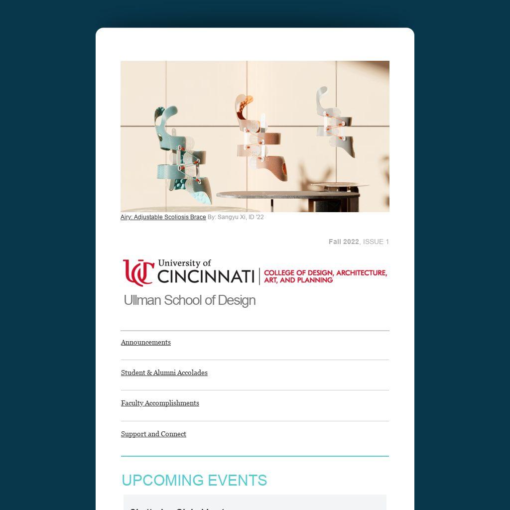 - Three University of Cincinnati students, Alexis Piascik (FASHION'22), Cameryn Blake (FASHION'22), and Draven Peña (FASHION'22) were selected to showcase their work on Runway 360 (R360), an educational initiative sponsored by Council of Fashion Designers of America (CFDA).
