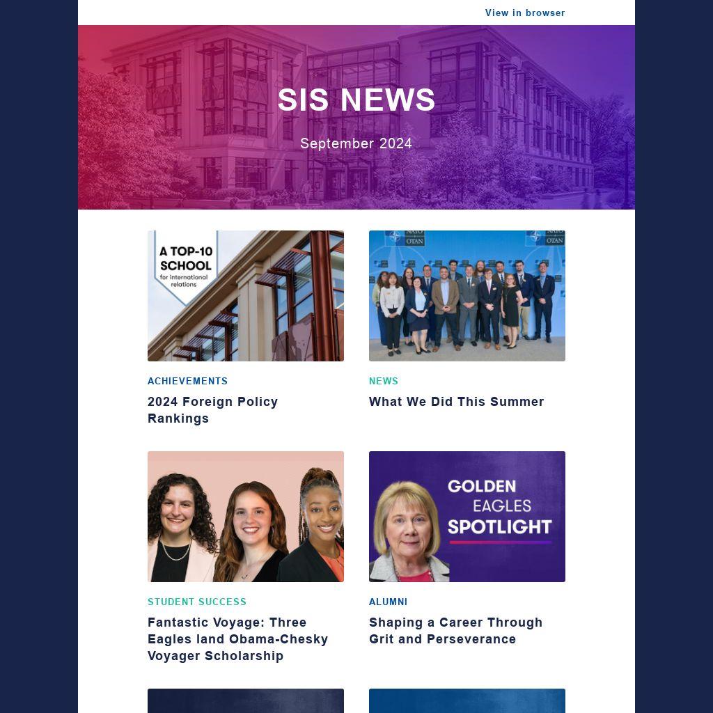 Interested in hearing more from the SIS Office of Research on our faculty’s research accomplishments and upcoming funding opportunities? Sign up today!