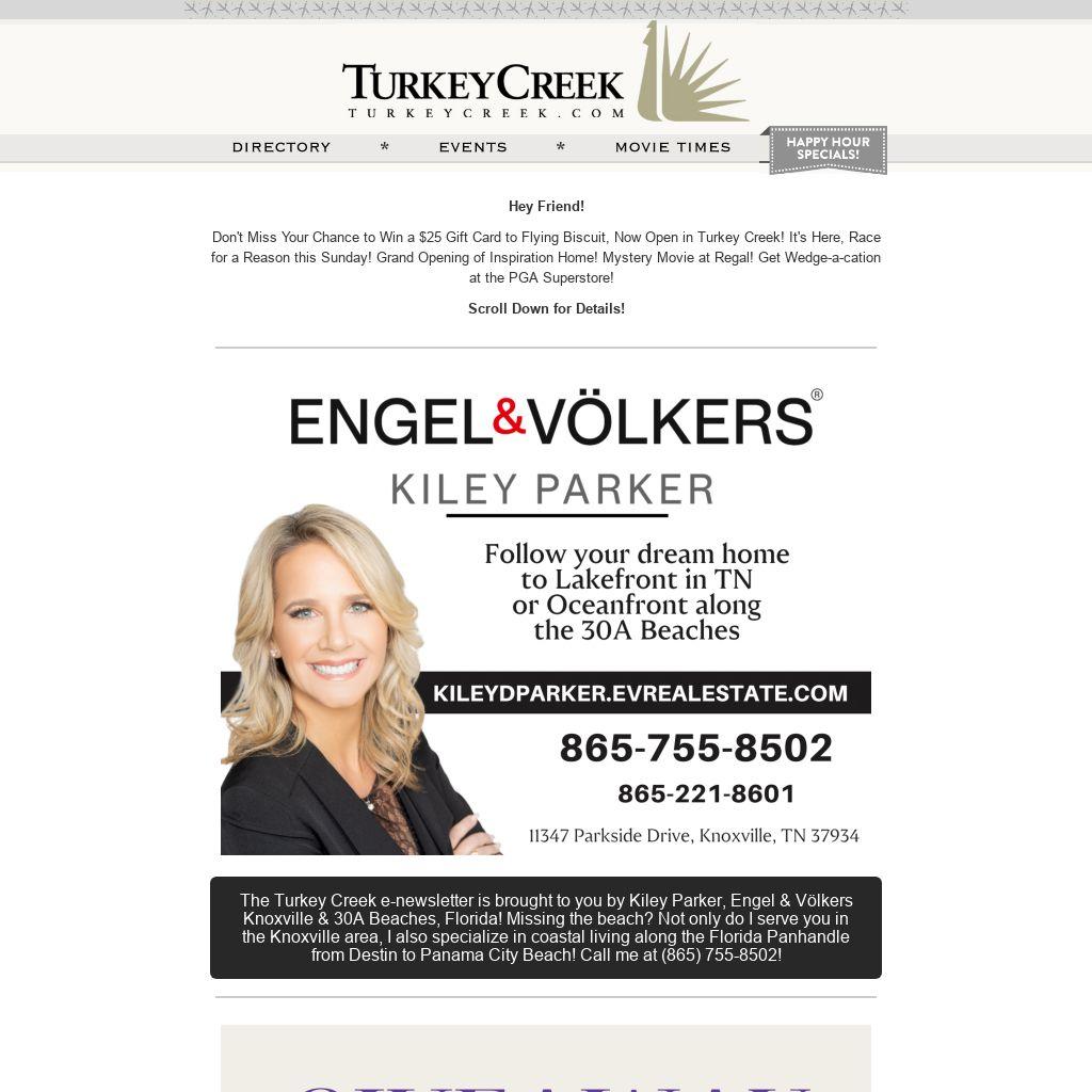 Don't Miss Your Chance to Win a $25 Gift Card to Flying Biscuit, Now Open in Turkey Creek! It's Here, Race for a Reason this Sunday! Grand Opening of Inspiration Home! Mystery Movie at Regal! Get Wedge-a-cation at the PGA Superstore!