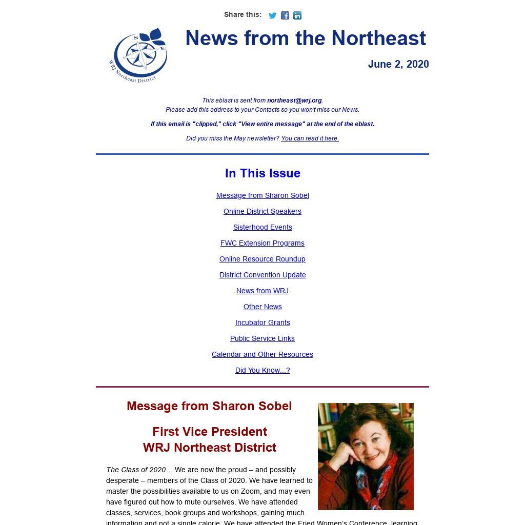 In this spirit of finding possibilities in great challenges, our Convention 2020 Committee is in the process of recreating many of the events, workshops, and services that were to be part of our biennial celebration in Tarrytown, New York. The women of the Northeast District will still meet in November, online, to engage with speakers, celebrate Shabbat, discuss leadership strategies, inaugurate our new YES Fund Tree, and install a new board of directors. And because geography and travel costs will no longer be a barrier to “Celebrating our Stories,” we are working with another WRJ district to coordinate and collaborate on several of our programs.