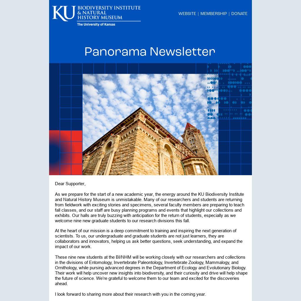 As we prepare for the start of a new academic year, the energy around the KU Biodiversity Institute and Natural History Museum is unmistakable. Many of our researchers and students are returning from fieldwork with exciting stories and specimens, several faculty members are preparing to teach fall classes, and our staff are busy planning programs and events that highlight our collections and exhibits. Our halls are truly buzzing with anticipation for the return of students, especially as we welcome nine new graduate students to our research divisions this fall.
