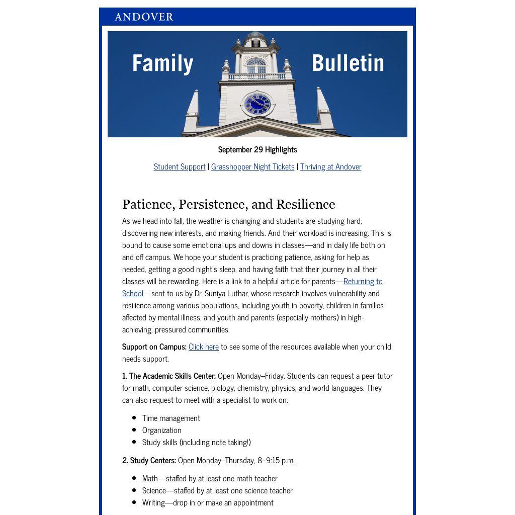 You received this message because you are a valued member of the Andover community. We are obligated to communicate with you, and require you to be on our email list while your student(s) attends Phillips Academy. For more information contact the Dean of Studies Office. |