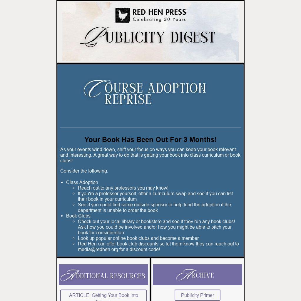 As your events wind down, shift your focus on ways you can keep your book relevant and interesting. A great way to do that is getting your book into class curriculum or book clubs!