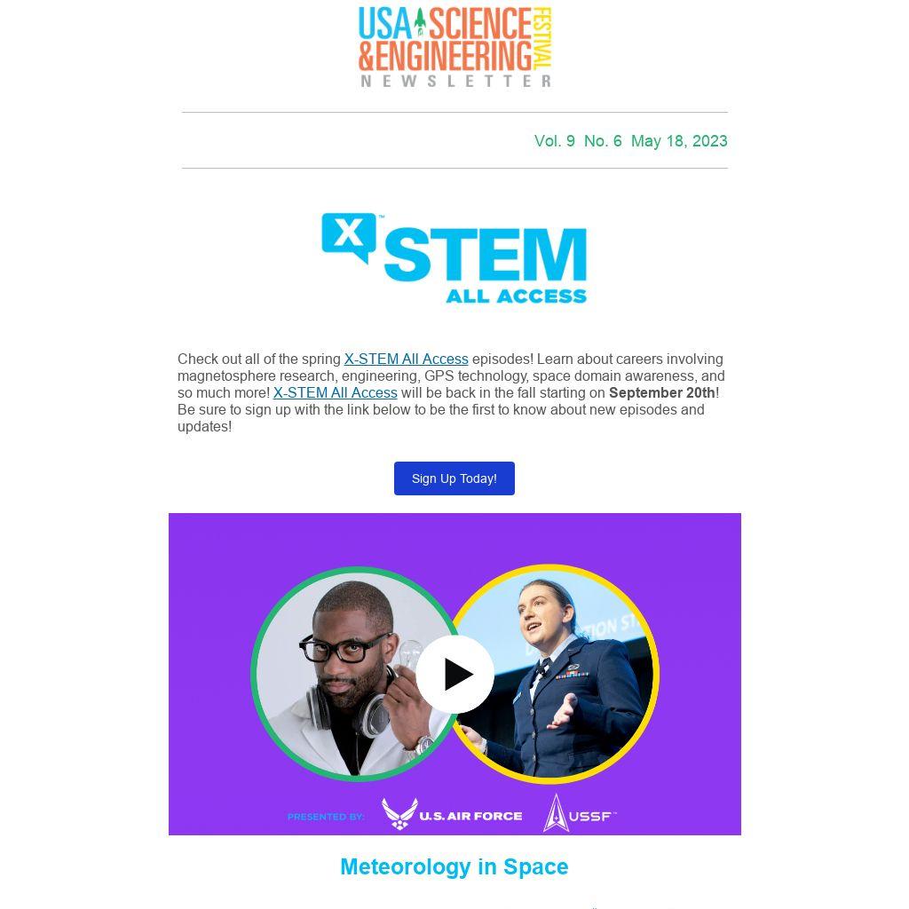 Check out all of the spring X-STEM All Access episodes! Learn about careers involving magnetosphere research, engineering, GPS technology, space domain awareness, and so much more! X-STEM All Access will be back in the fall starting on September 20th! Be sure to sign up with the link below to be the first to know about new episodes and updates!