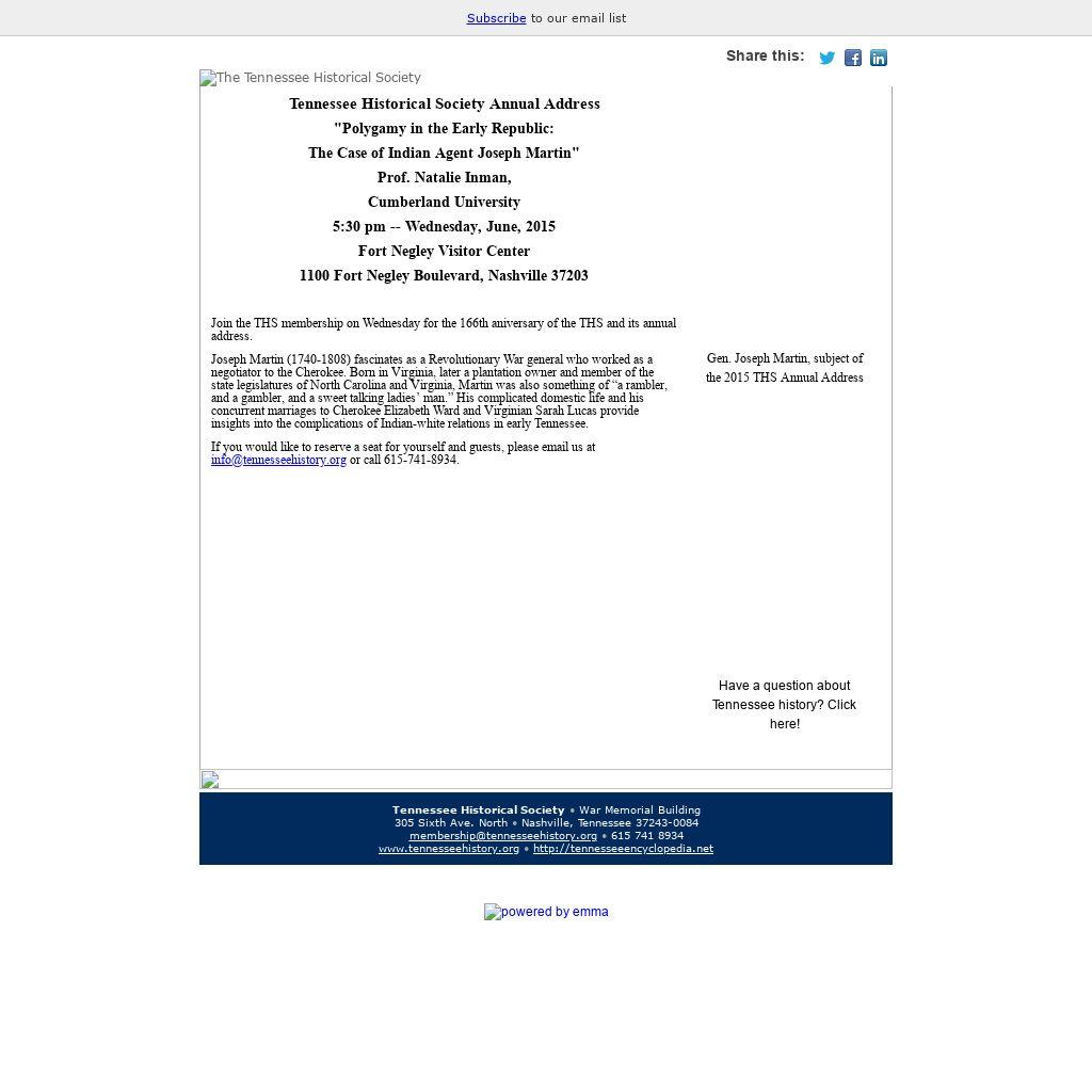 If you would like to reserve a seat for yourself and guests, please email us at info@tennesseehistory.org or call 615-741-8934.
