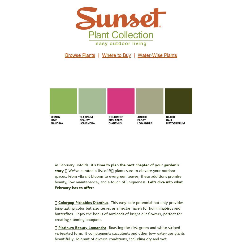 Seize the opportunity to enhance your garden with these fabulous finds from our Sunset Plant Collection. Whether you’re aiming for bursts of color, low-maintenance elegance, or unique foliage, these plants offer a diverse range of options. Find the full list of February picks and a garden center near you on our website!