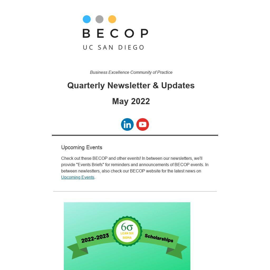 A blended learning project management program that incorporates online learning, live discussion sessions, social learning, mentorship, and project work to prepare the next wave of project managers at UC San Diego is being offered by the UC San Diego Business Excellence Community of Practice (BECOP), UC San Diego Division of Extended Studies, and UC San Diego Campus and Health Human Resources.