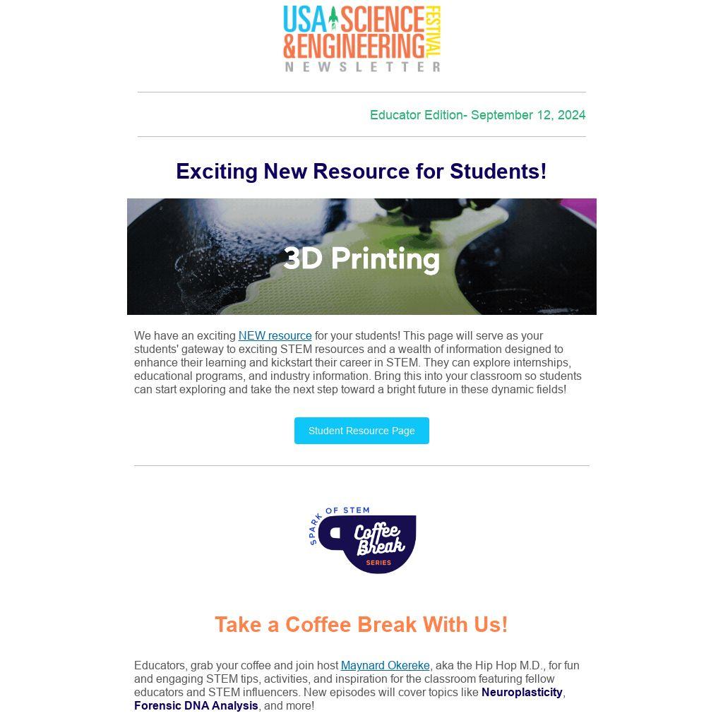 The Spark of STEM (SoS) Coffee Break Series is an online series for educators designed to inspire and equip teachers with innovative STEM learning tools.