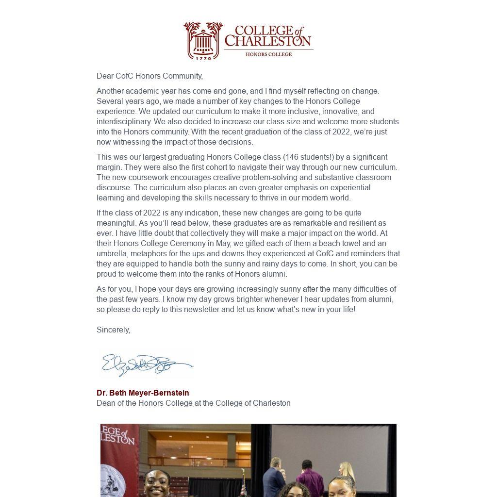 Dear CofC Honors Community,