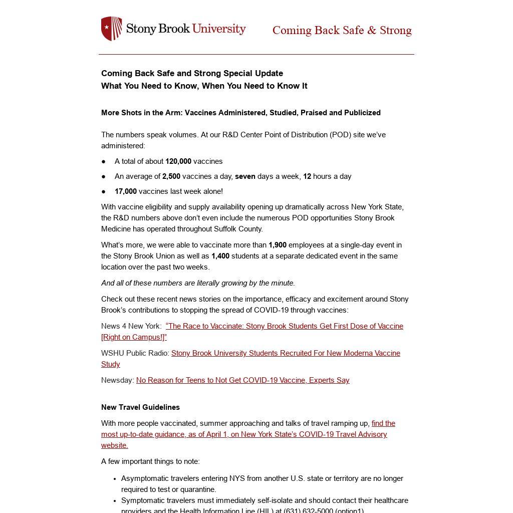 What’s more, we were able to vaccinate more than 1,900 employees at a single-day event in the Stony Brook Union as well as 1,400 students at a separate dedicated event in the same location over the past two weeks.
