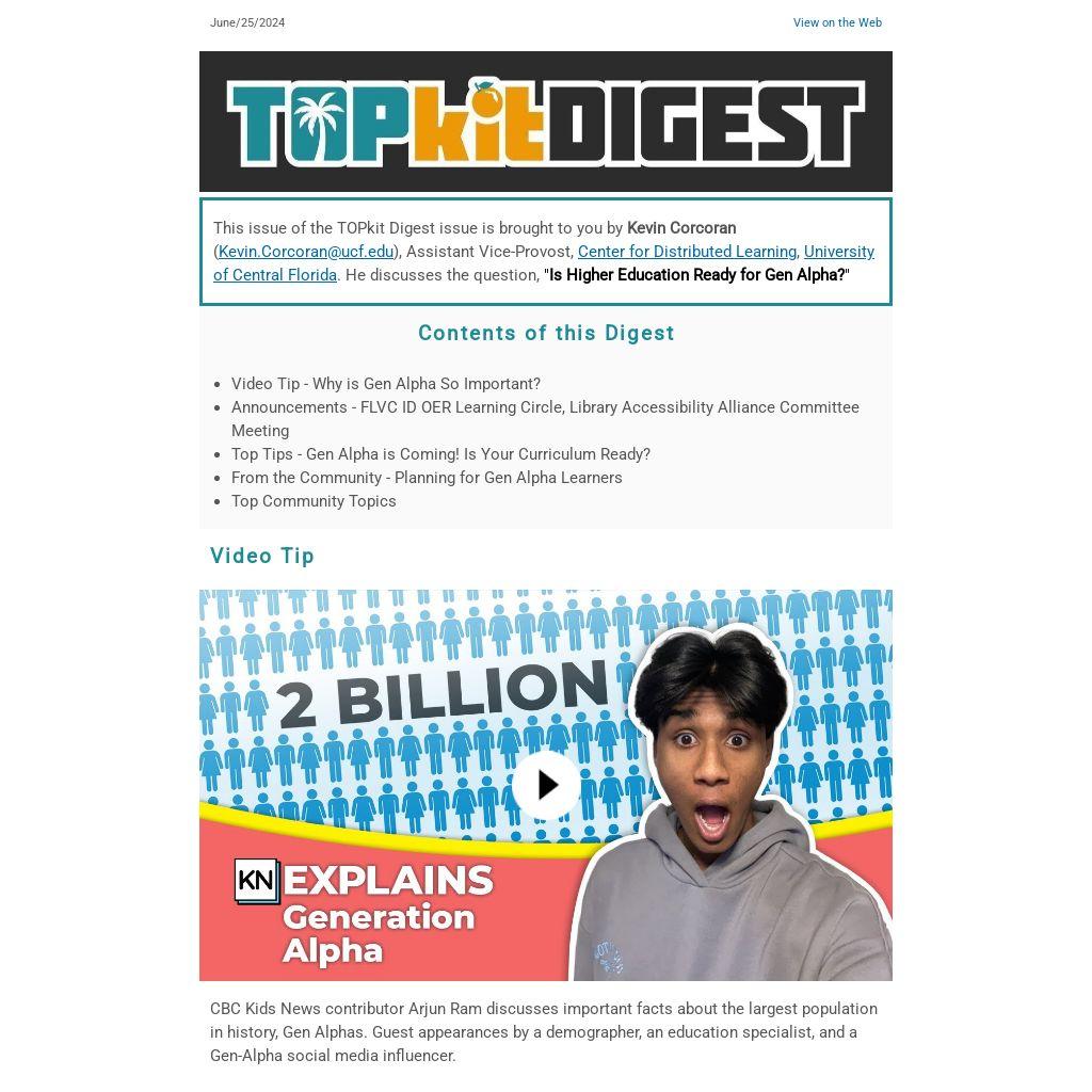 Gen Alpha is the most assimilable, educated, and prosperous generation in history. Their learning experiences, shaped by technology, will significantly impact their future development and subsequent employment. There are over 2 billion Alphas globally who will be college-ready in less than four years. We recommend using the TOPkit Faculty Development Decision Guide, to review your faculty development plan while keeping Gen Alpha students in mind. With these efforts, your faculty can be ready.
