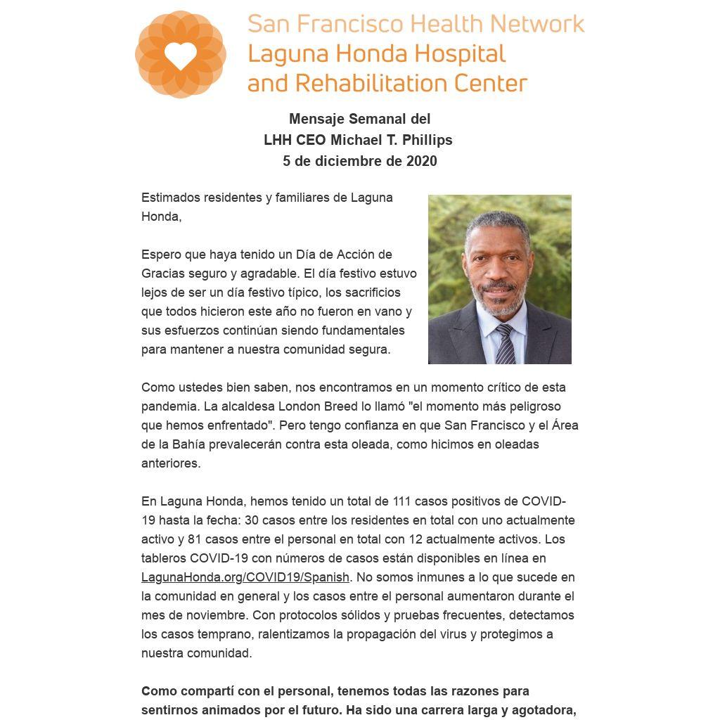Estimados residentes y familiares de Laguna Honda,