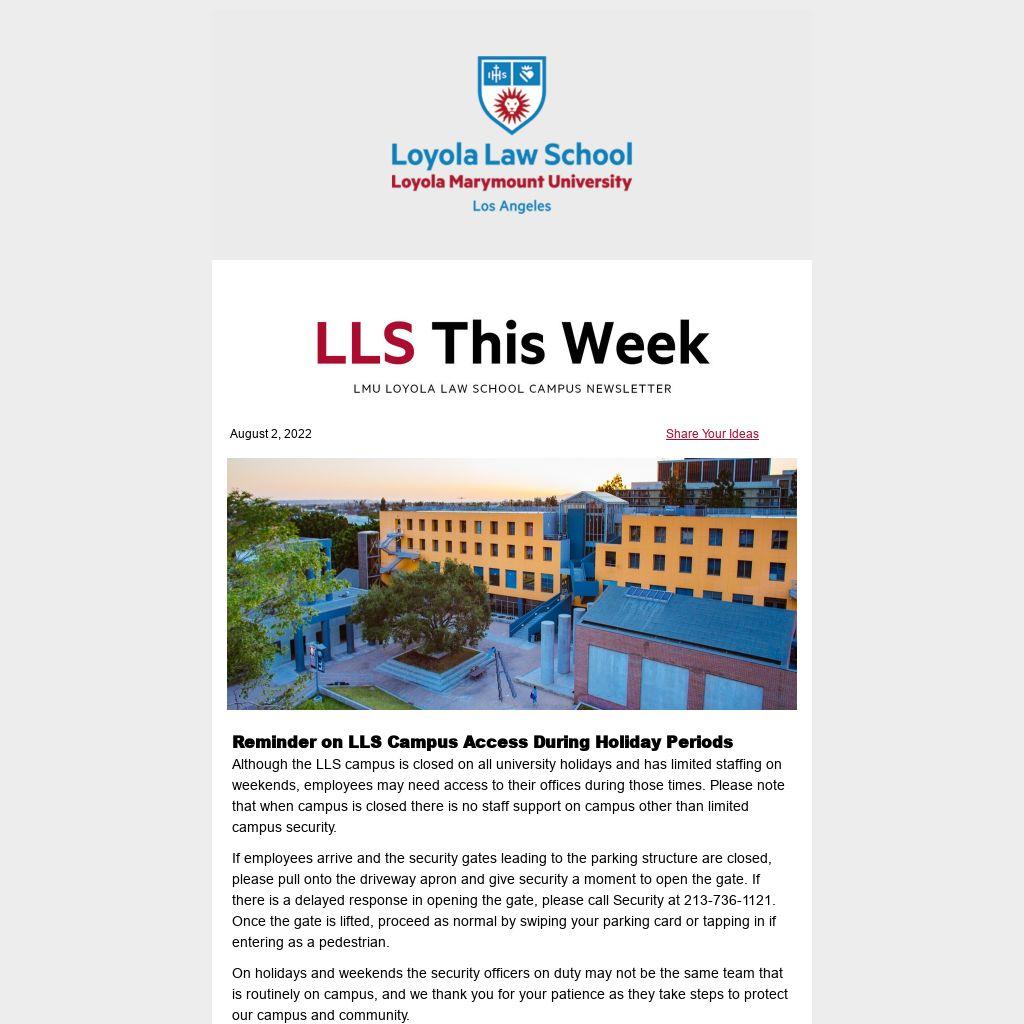 Although the LLS campus is closed on all university holidays and has limited staffing on weekends, employees may need access to their offices during those times. Please note that when campus is closed there is no staff support on campus other than limited campus security.