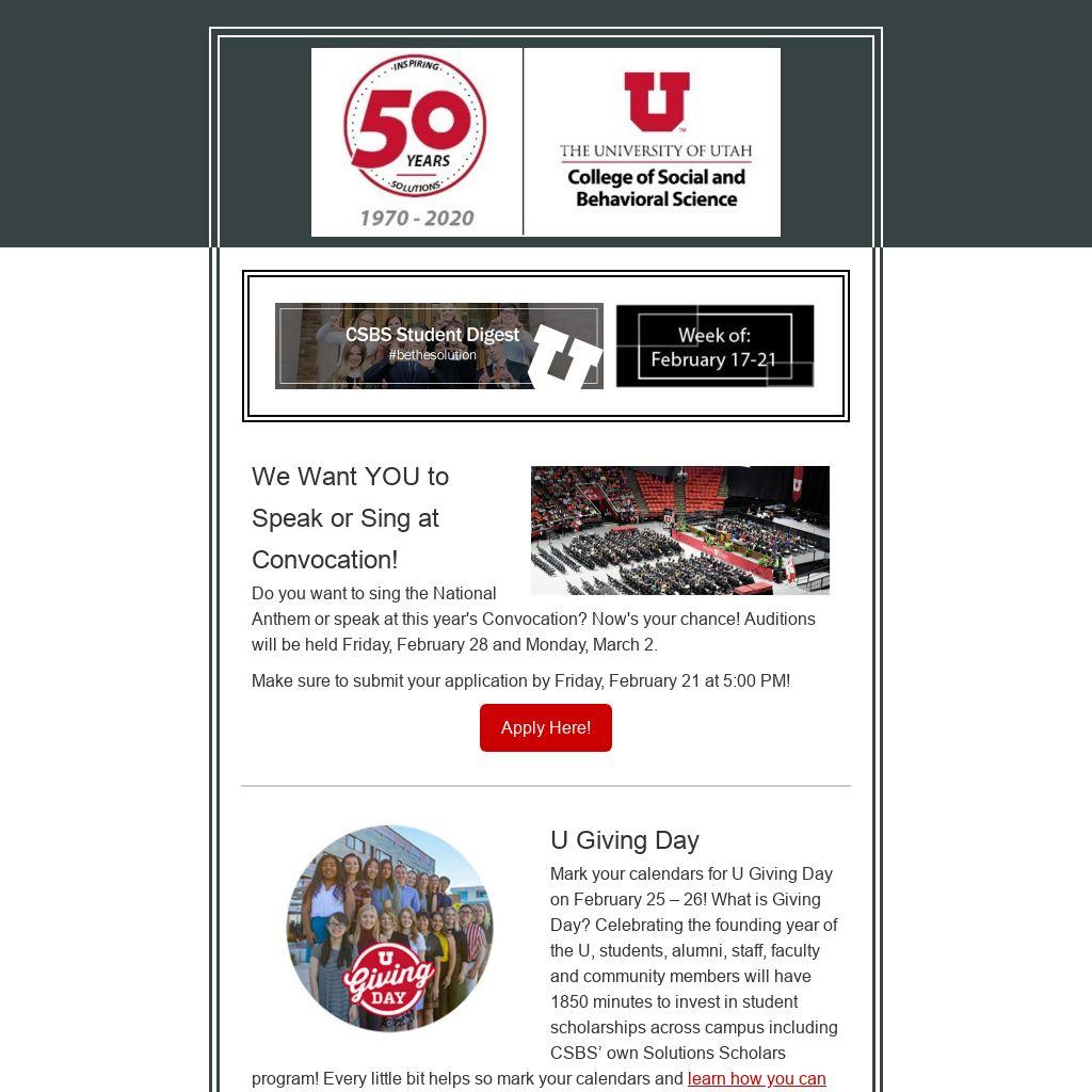 Do you want to sing the National Anthem or speak at this year's Convocation? Now's your chance! Auditions will be held Friday, February 28 and Monday, March 2.