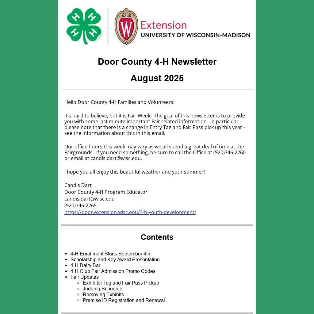 Door County 4-H Newsletter |