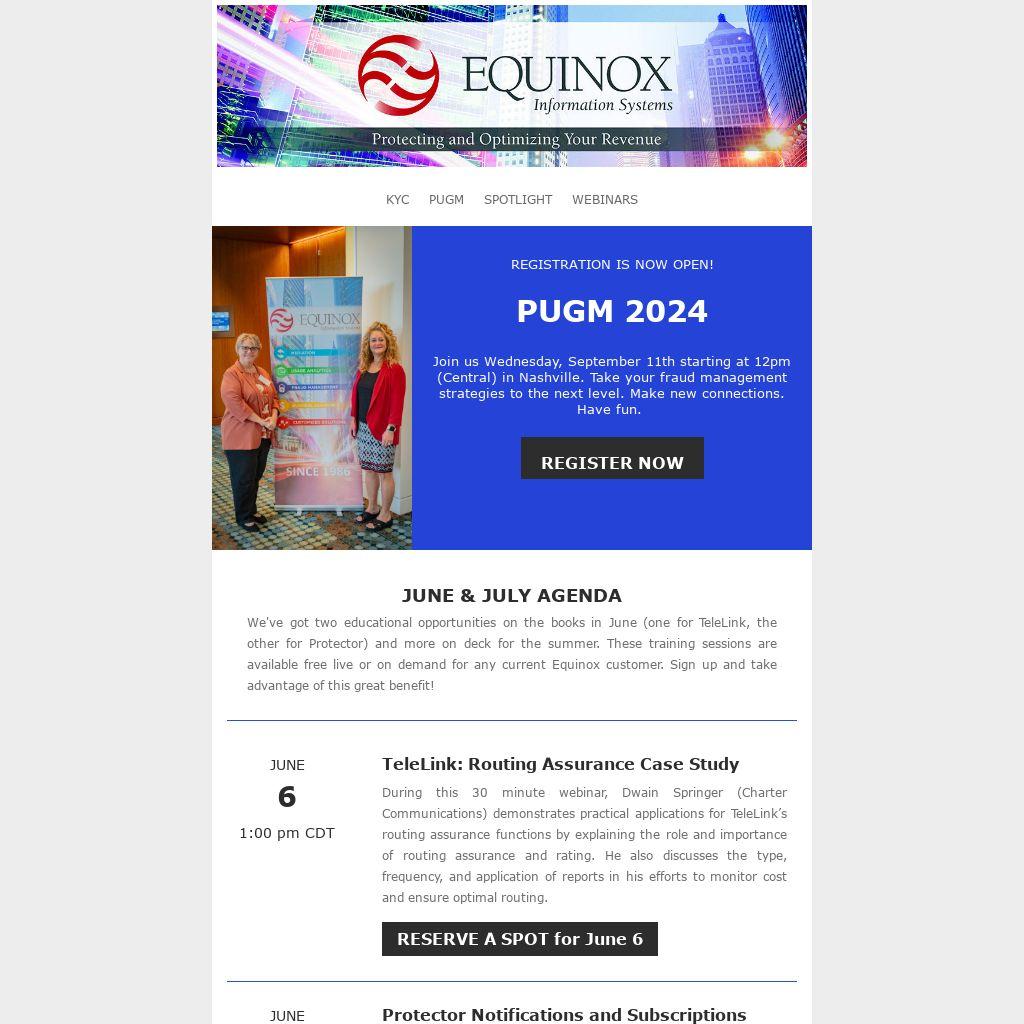 We've got two educational opportunities on the books in June (one for TeleLink, the other for Protector) and more on deck for the summer. These training sessions are available free live or on demand for any current Equinox customer. Sign up and take advantage of this great benefit!