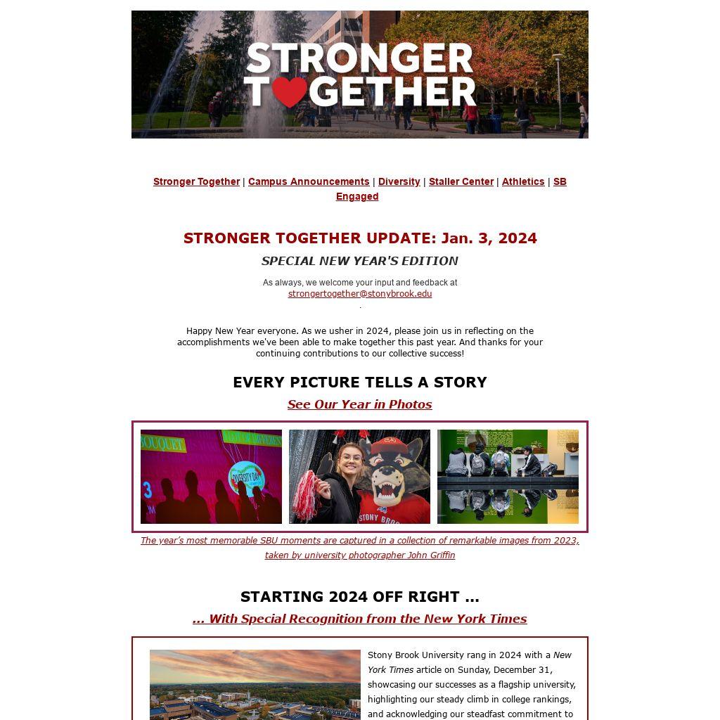 Stony Brook University rang in 2024 with a New York Times article on Sunday, December 31, showcasing our successes as a flagship university, highlighting our steady climb in college rankings, and acknowledging our steadfast commitment to providing equitable opportunities for quality education across New York State.