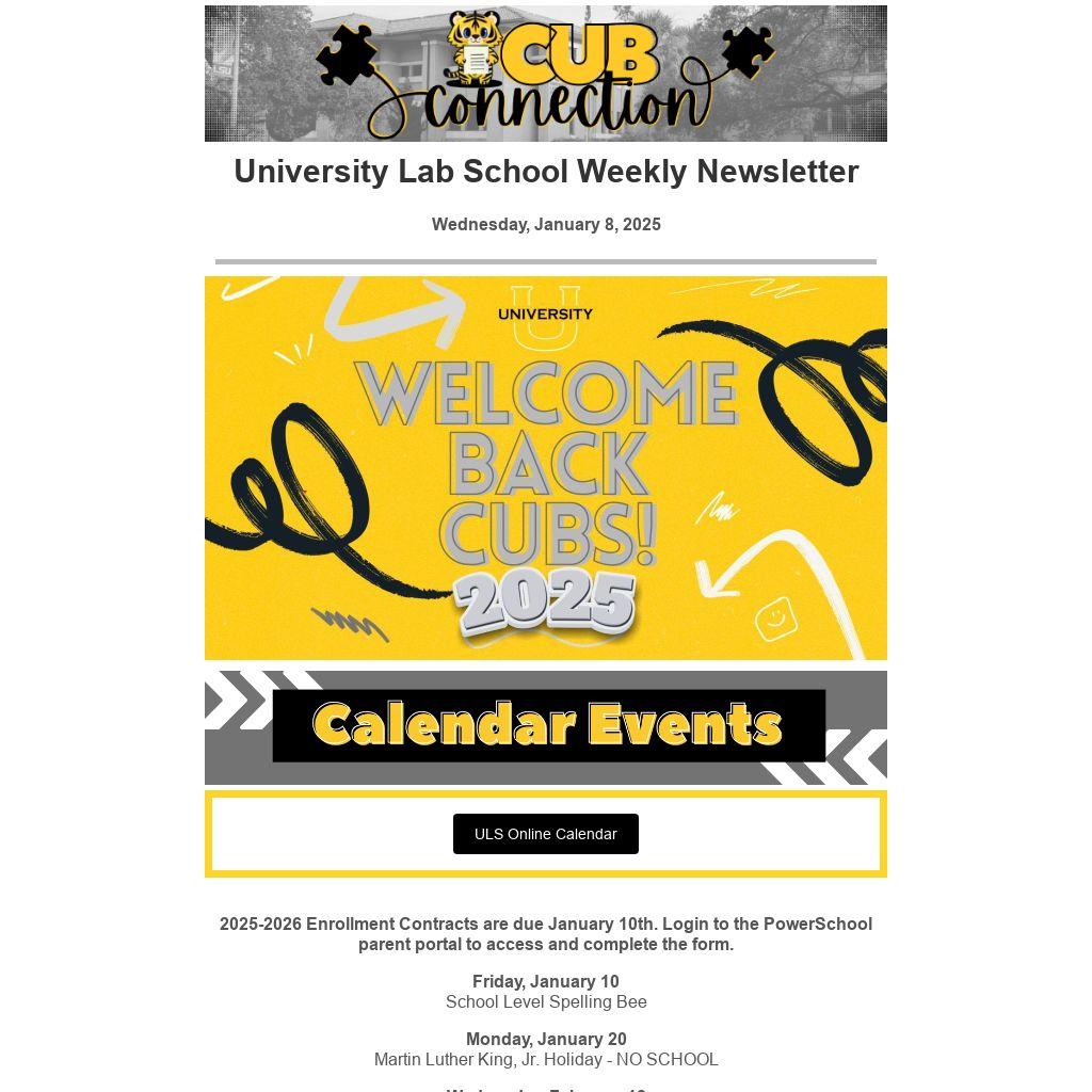 University Lab School Weekly Newsletter |