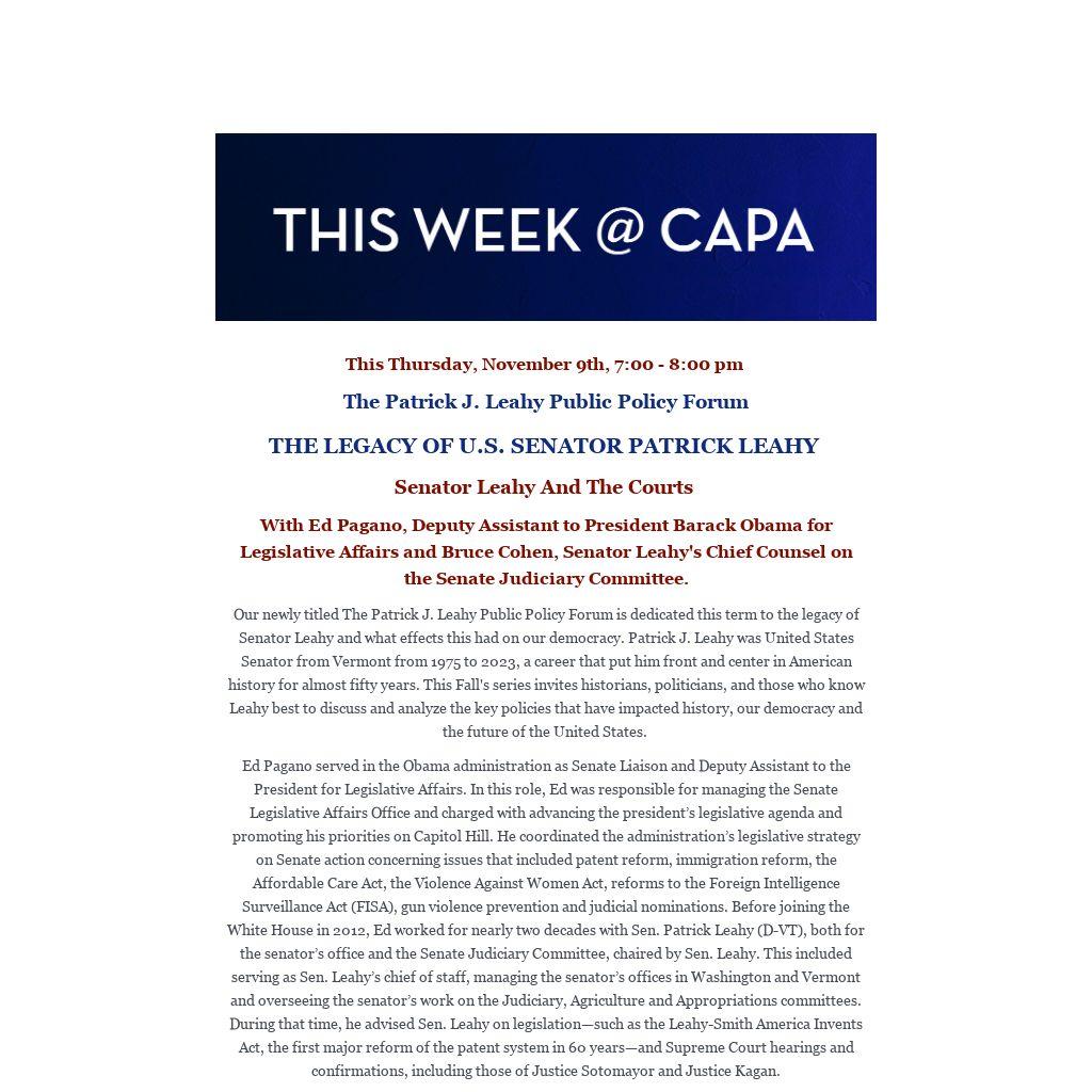 Our newly titled The Patrick J. Leahy Public Policy Forum is dedicated this term to the legacy of Senator Leahy and what effects this had on our democracy. Patrick J. Leahy was United States Senator from Vermont from 1975 to 2023, a career that put him front and center in American history for almost fifty years. This Fall's series invites historians, politicians, and those who know Leahy best to discuss and analyze the key policies that have impacted history, our democracy and the future of the United States.