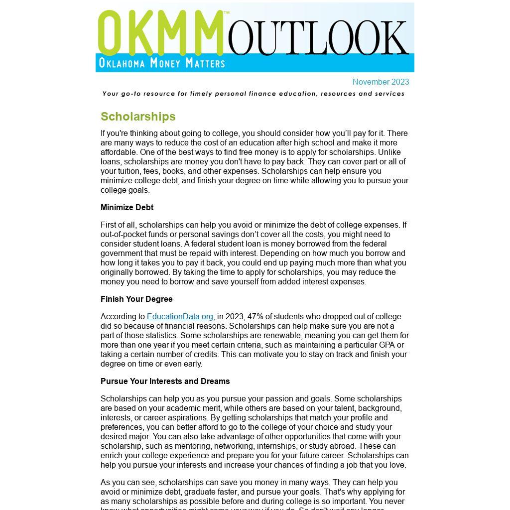 OKMM and the Oklahoma College Assistance Program have several resources to help you successfully apply for and utilize scholarships:
