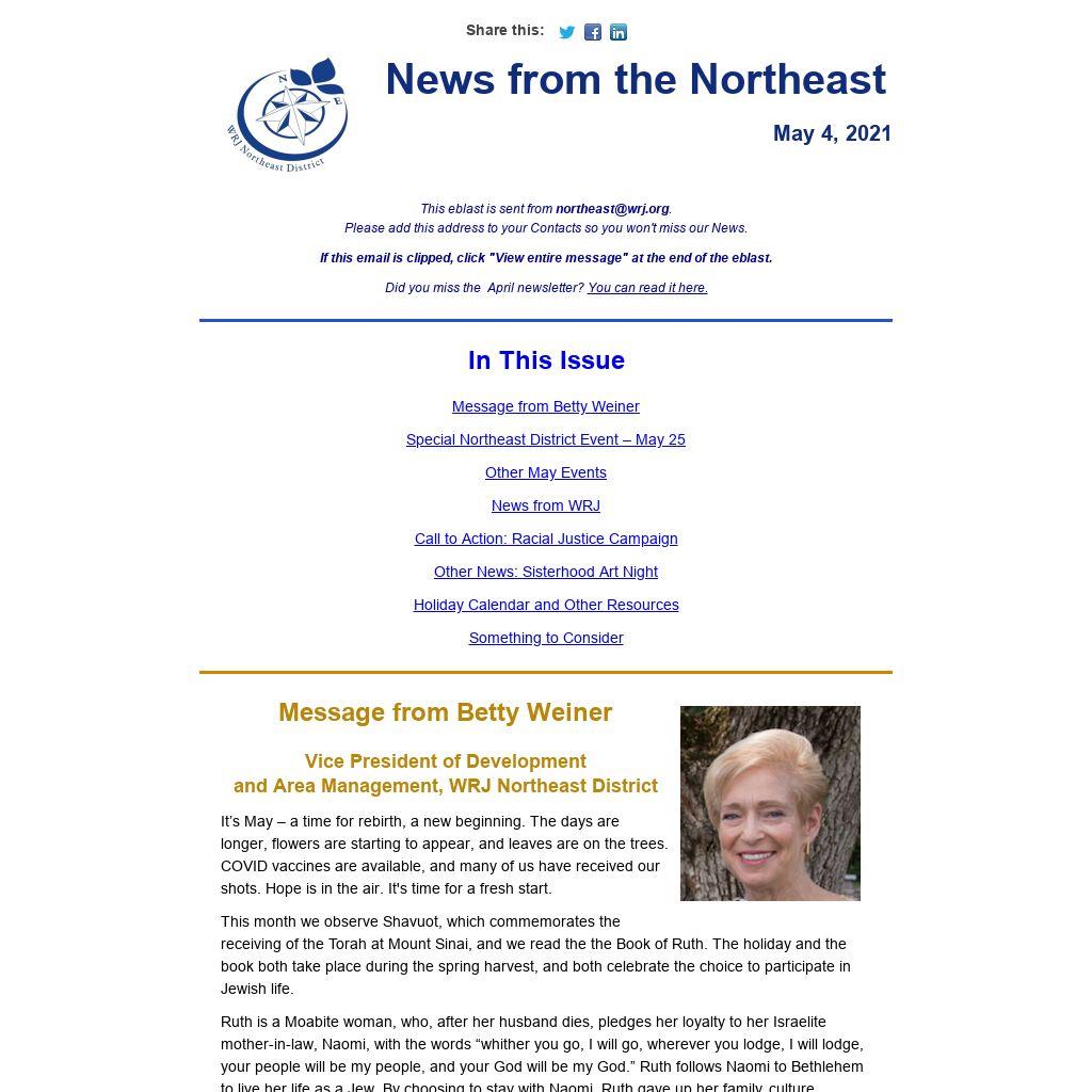 This eblast is sent from northeast@wrj.org.