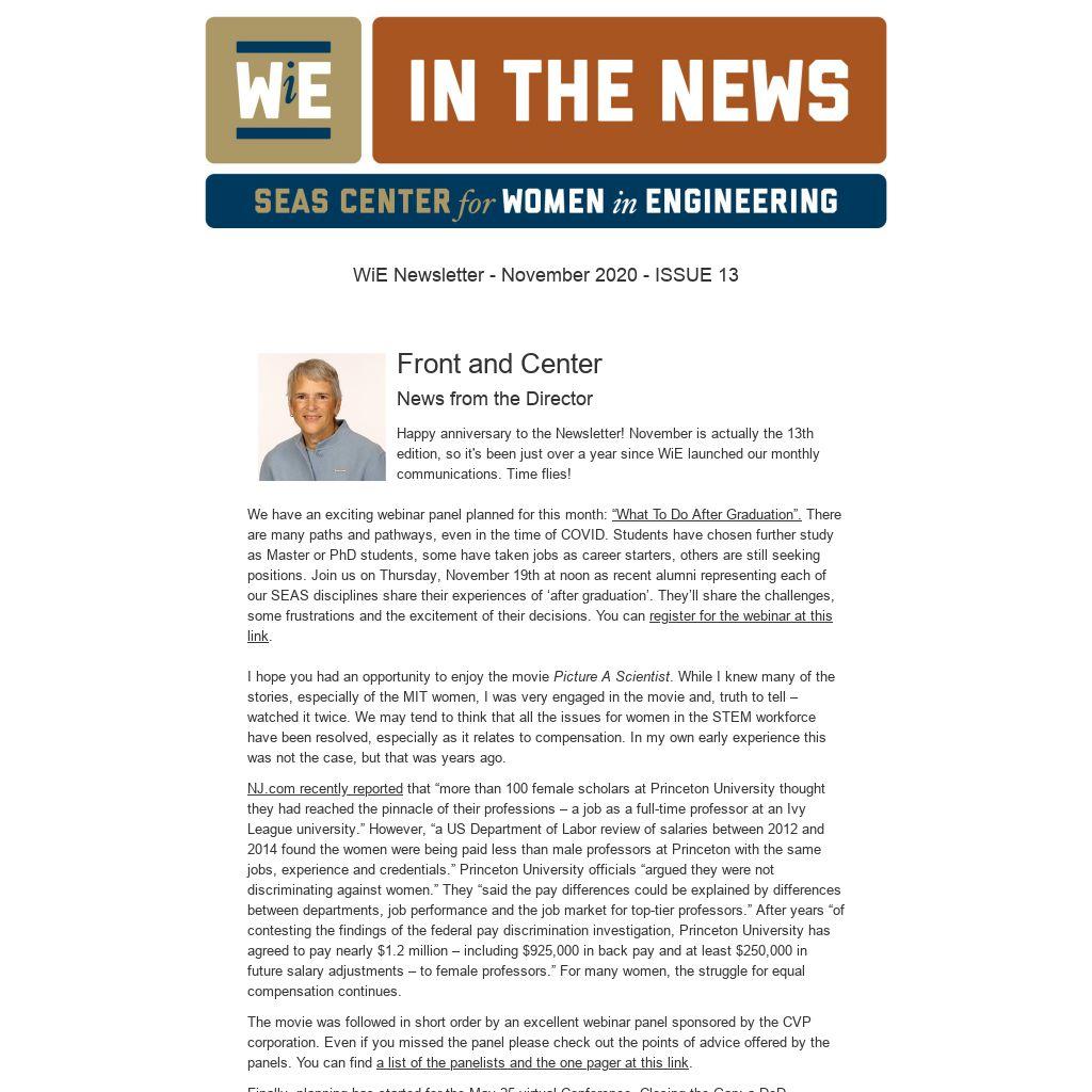 Happy anniversary to the Newsletter! November is actually the 13th edition, so it's been just over a year since WiE launched our monthly communications. Time flies!