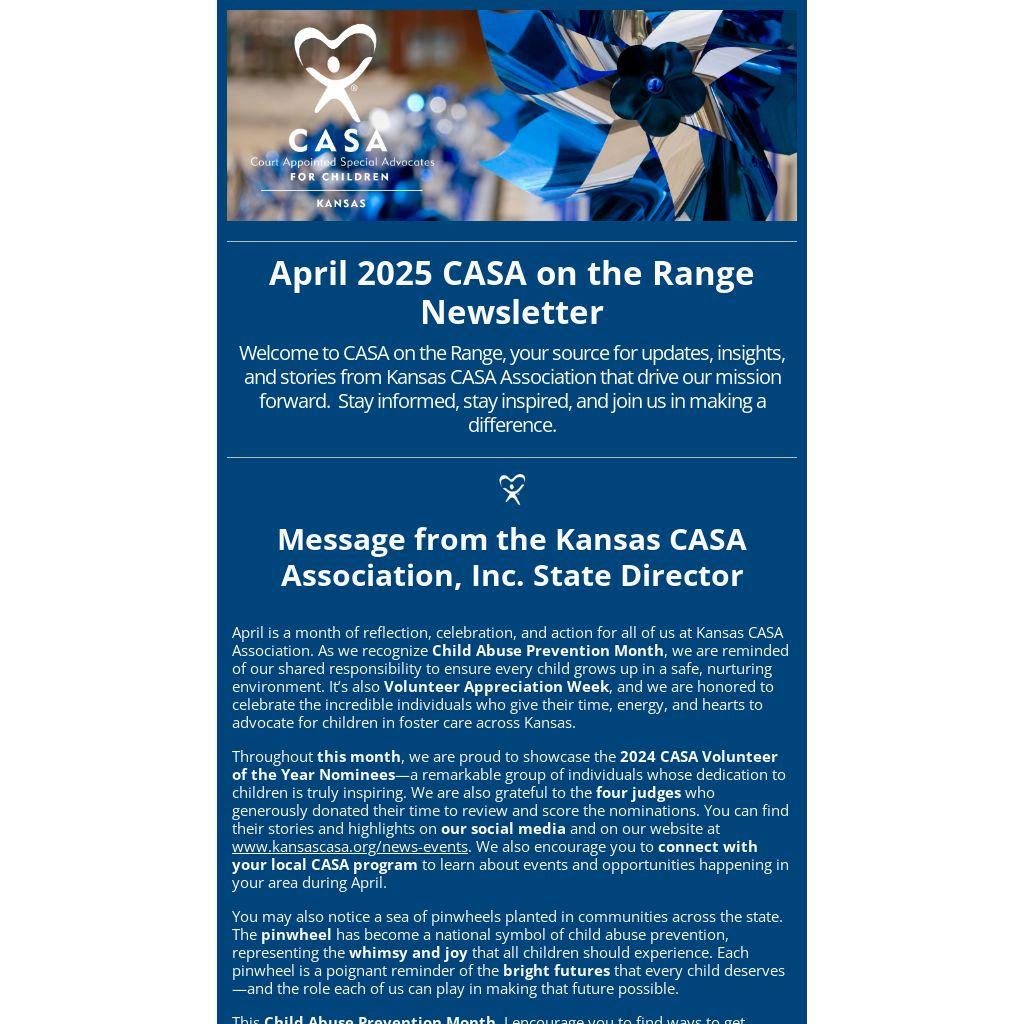 Welcome to CASA on the Range, your source for updates, insights, and stories from Kansas CASA Association that drive our mission forward. Stay informed, stay inspired, and join us in making a difference.