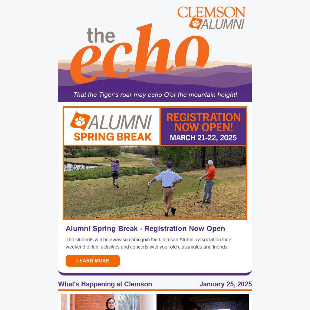 The students will be away so come join the Clemson Alumni Association for a weekend of fun, activities and concerts with your old classmates and friends!