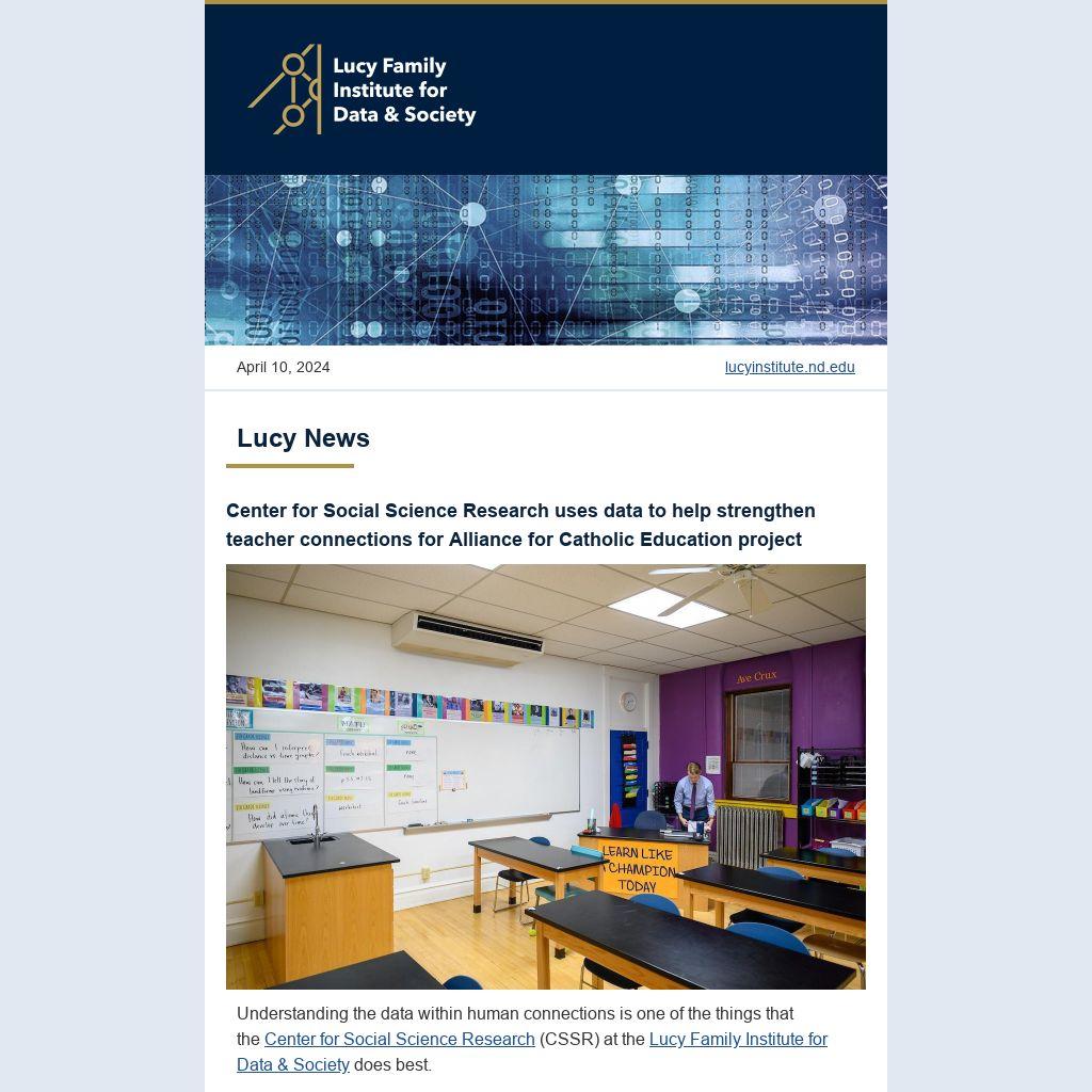 We welcome you to pursue open opportunities at the Lucy Family Institute for Data & Society, where data science, the newest technologies, and the humanities converge to rewrite the narrative of societal challenges.