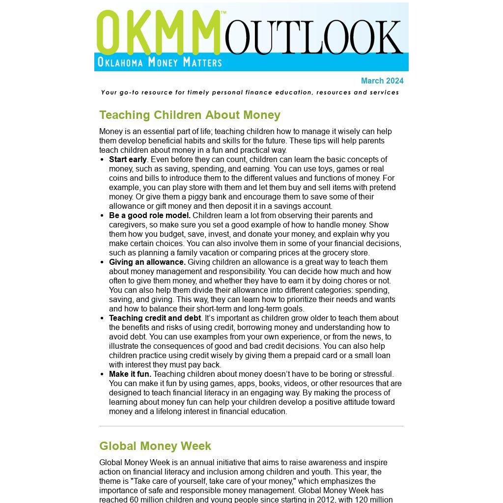 Check out the March edition of Financial Friday, Oklahoma Money Matters' online personal finance question and answer forum. This month, we’re answering a question about giving your children an allowance.
