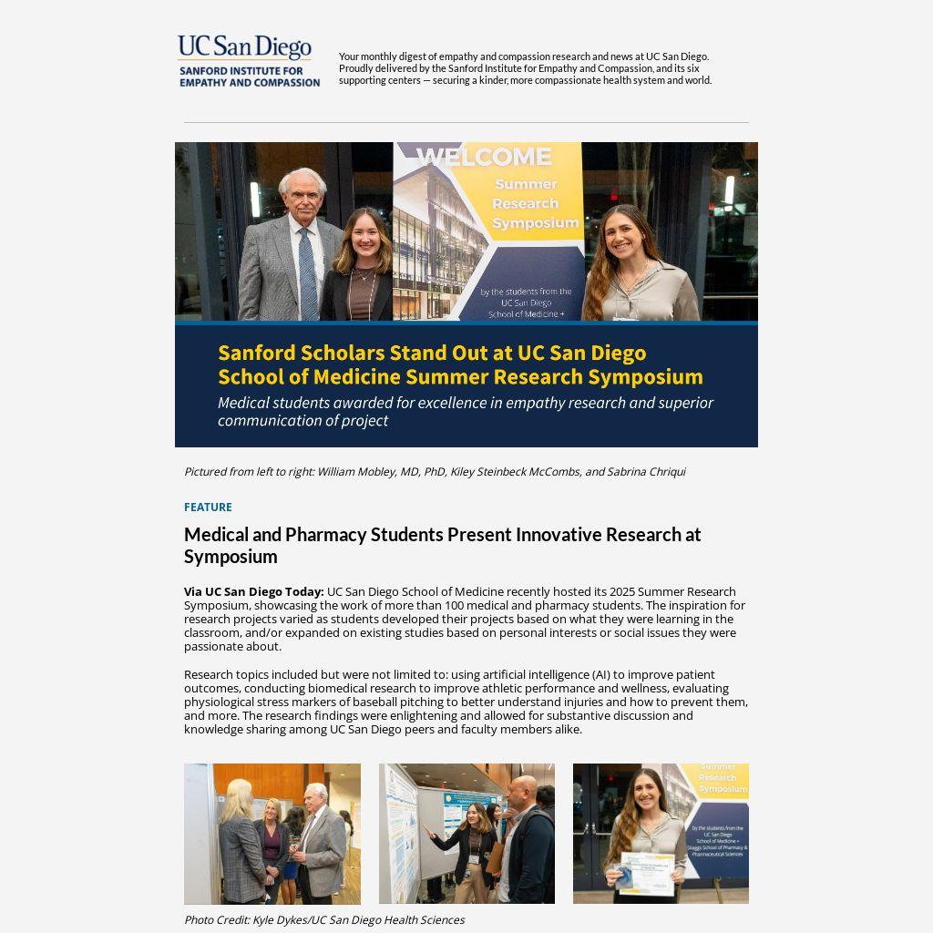 Your monthly digest of empathy and compassion research and news at UC San Diego. Proudly delivered by the Sanford Institute for Empathy and Compassion, and its six supporting centers — securing a kinder, more compassionate health system and world.