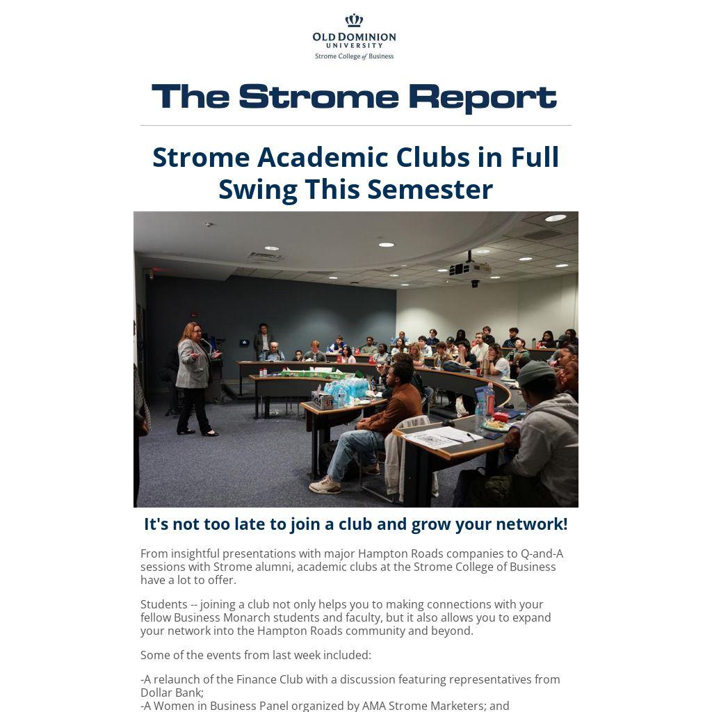 From insightful presentations with major Hampton Roads companies to Q-and-A sessions with Strome alumni, academic clubs at the Strome College of Business have a lot to offer.