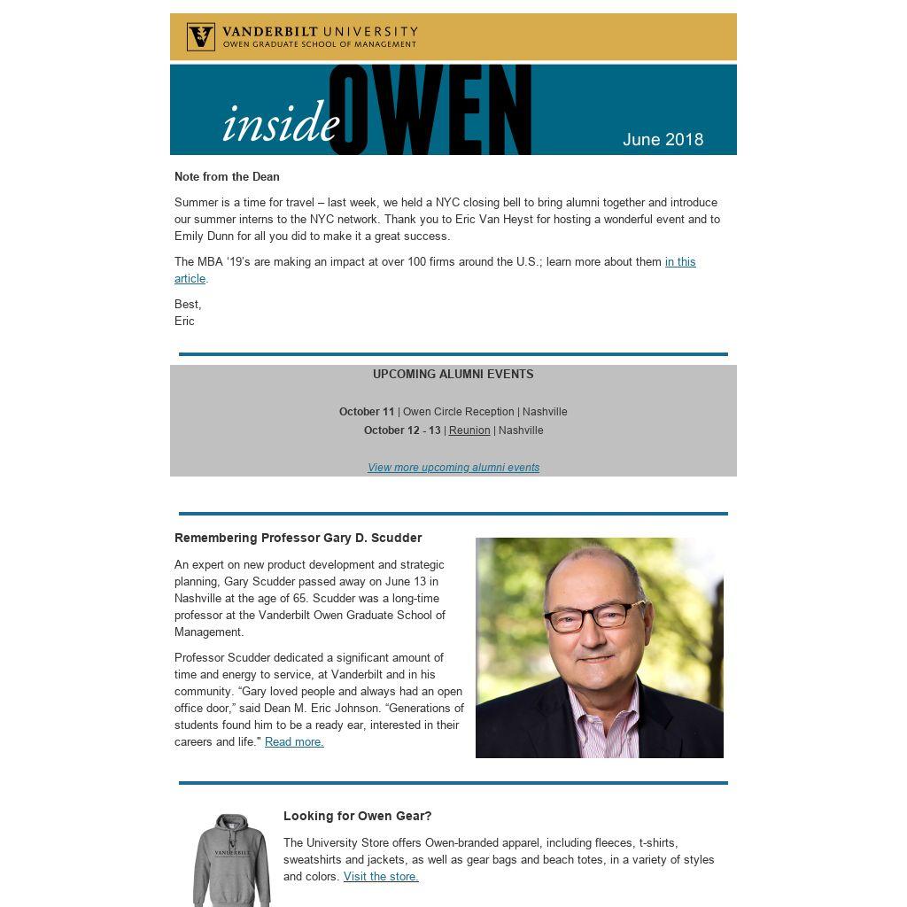 The second annual Vanderbilt Giving Day, which took place on June 5, was a tremendous success, with 7,024 donors and nearly $6 million raised for the University. Owen finished with 537 donors (5th among all Vanderbilt organizations) and $146,655 raised (4th among all Vanderbilt organizations).