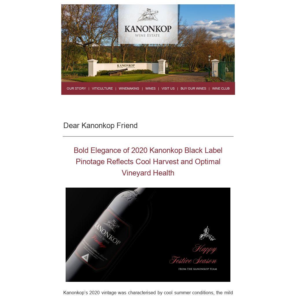 Kanonkop’s 2020 vintage was characterised by cool summer conditions, the mild temperatures being interspersed with bouts of rain after a relatively warm spring had caused vigorous bud-break and early shoot-development.
